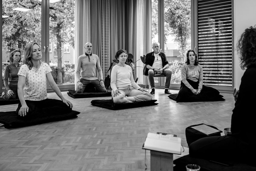 Fase 1: je bouwt de juiste zithouding op. Hiermee zet je je lichaam naar Zijn.